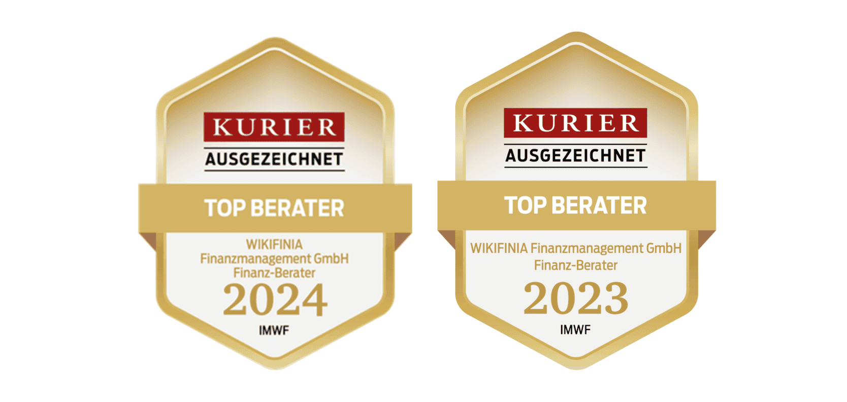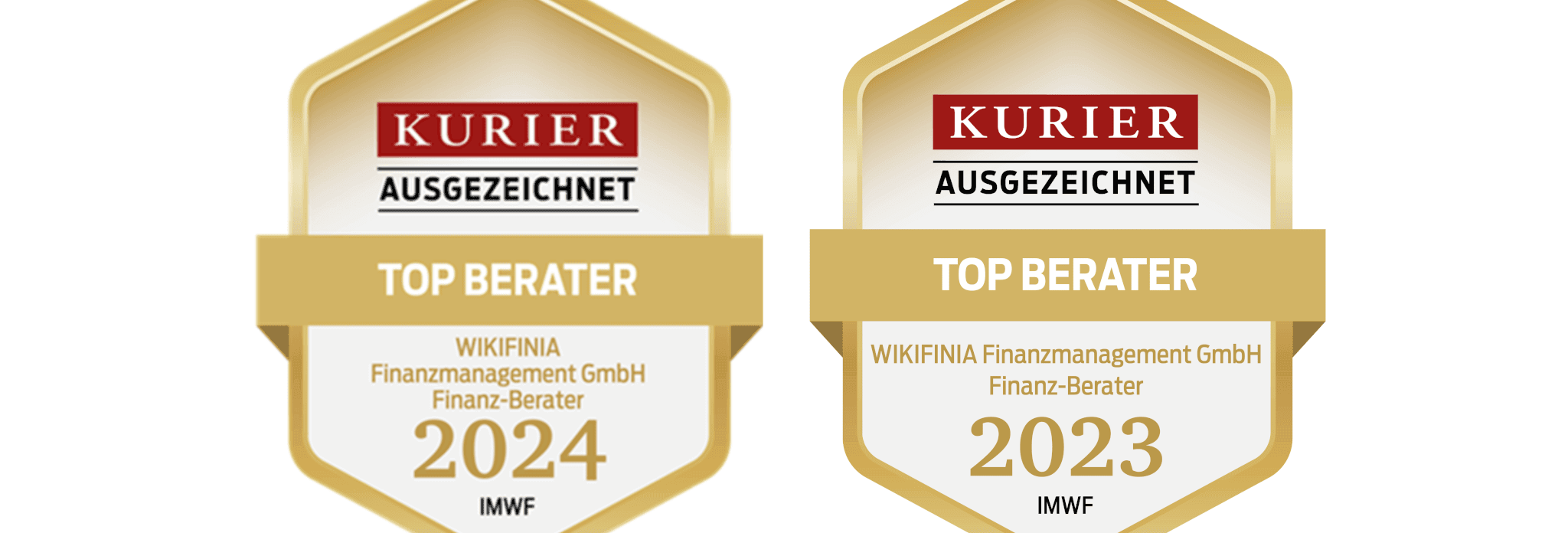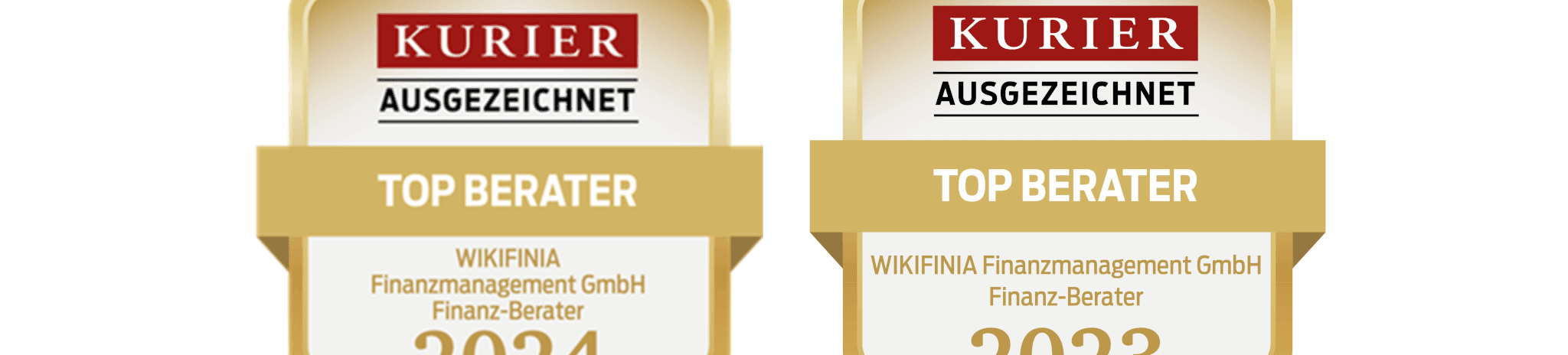 Wir freuen uns sehr, dass wir als WIKIFINIA, zum zweiten Mal in Folge als „Top-Finanzberater“ ausgezeichnet wurden. Diese erneute Anerkennung durch das Institut für Management und Wirtschaftsforschung (IMWF Austria) in Kooperation mit dem KURIER bestätigt unseren unermüdlichen Einsatz und unsere Fachkompetenz im Finanzberatungssektor.